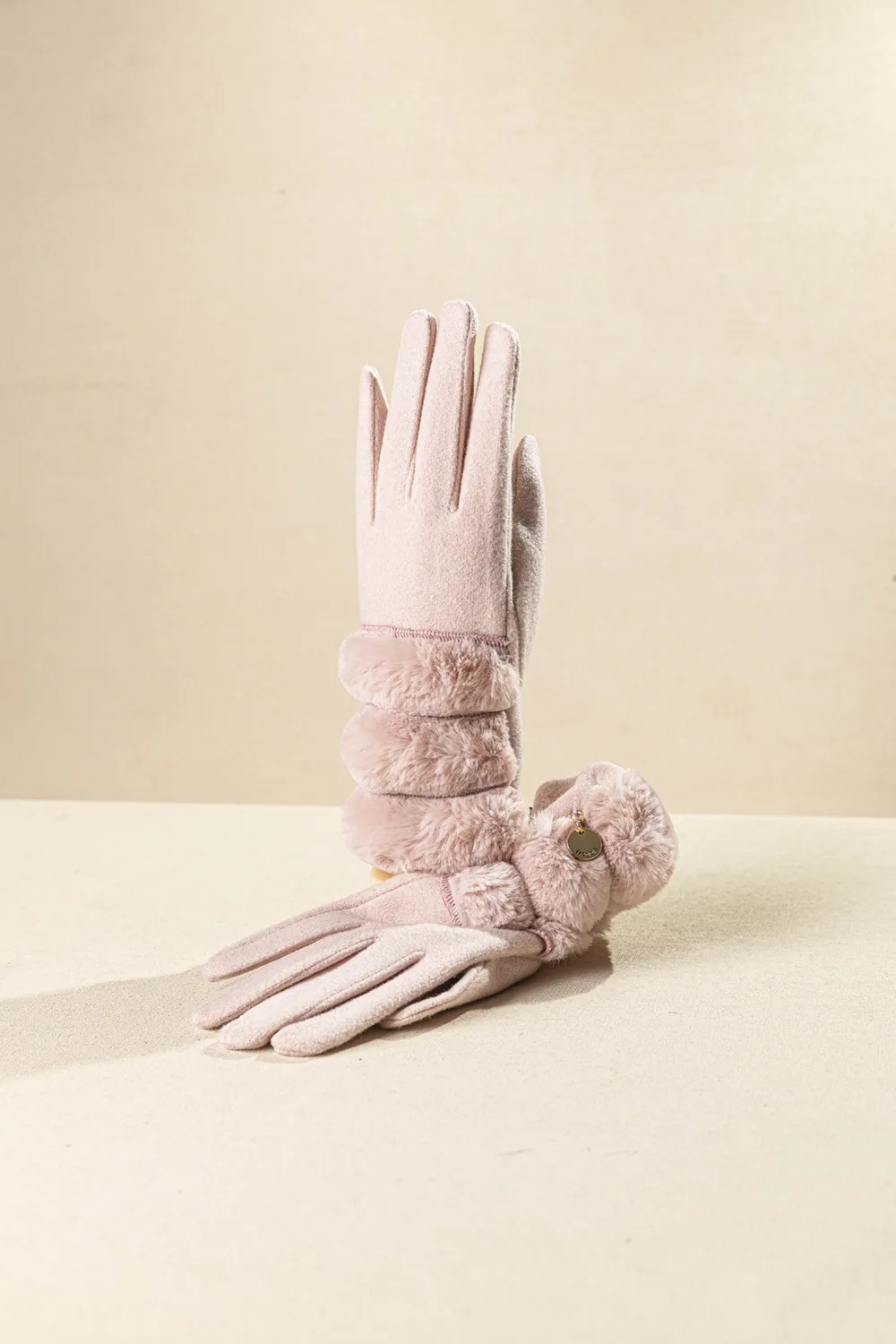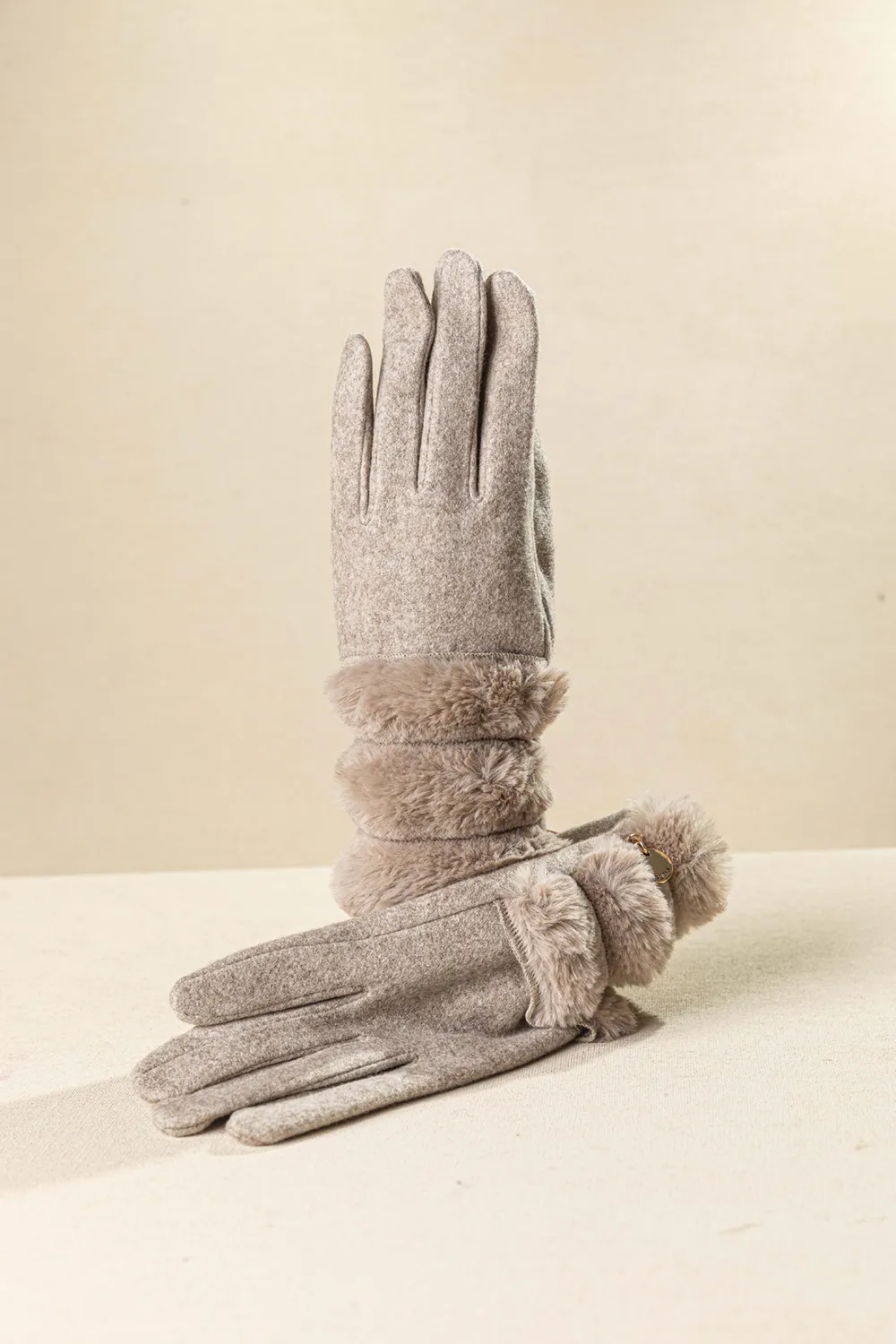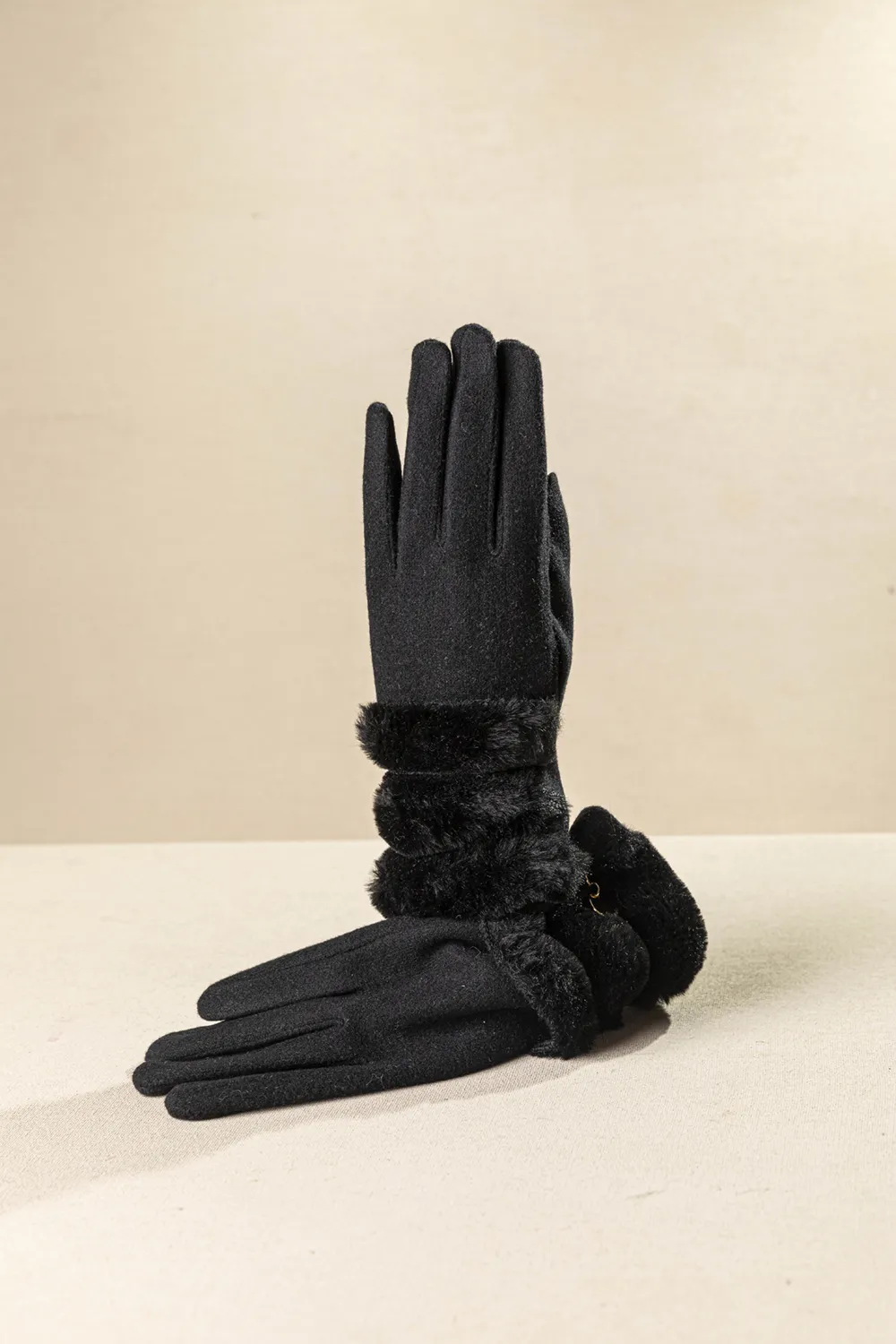 Κομψά και ζεστά γυναικεία γάντια με απαλή αφή και πολυτελή λεπτομέρεια με οικολογική γούνα στον καρπό.