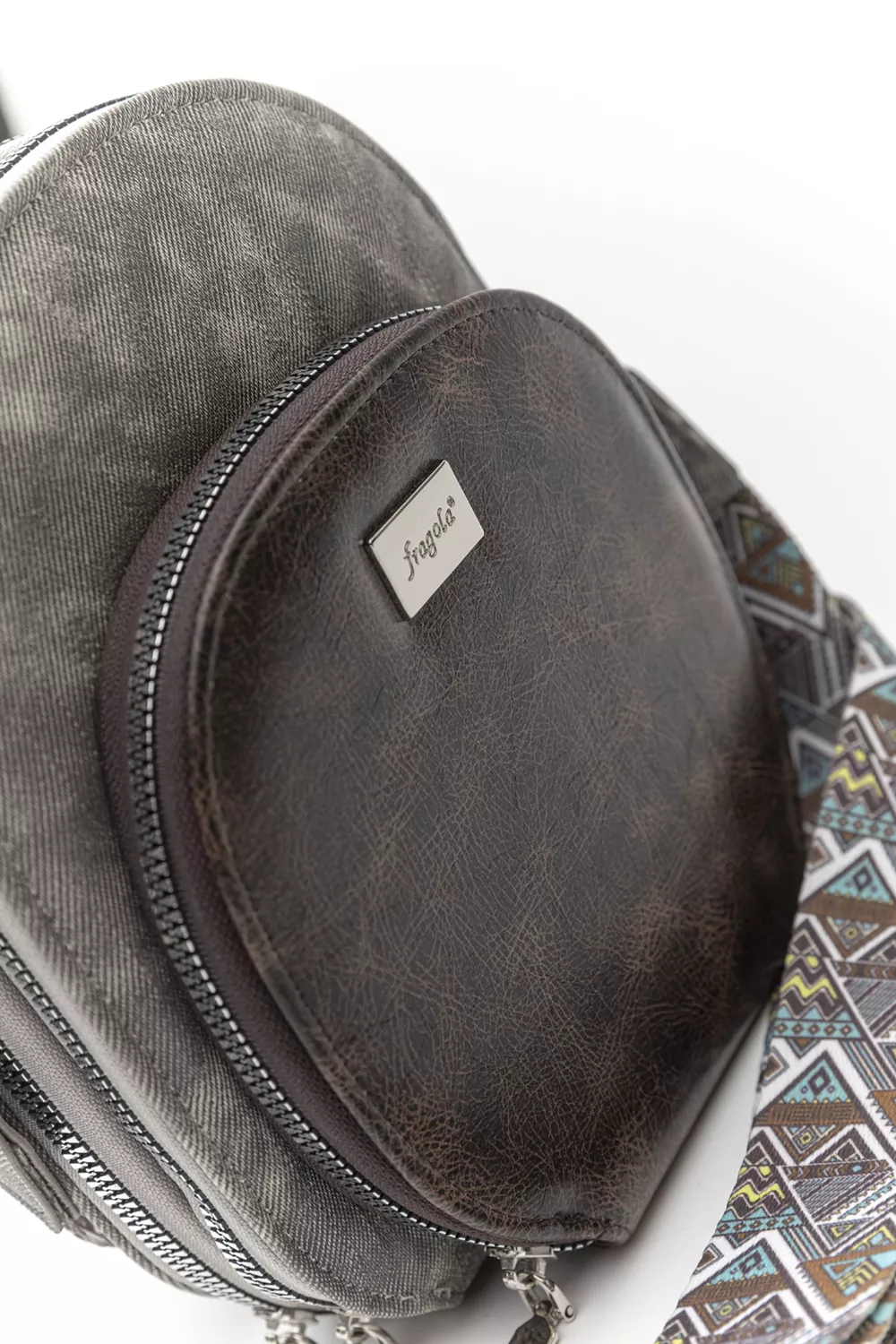 Υλικό: Vintage οικολογικό δέρμα συνδυασμένο με απομίμηση jean υφάσματος σε οικολογικό δέρμα