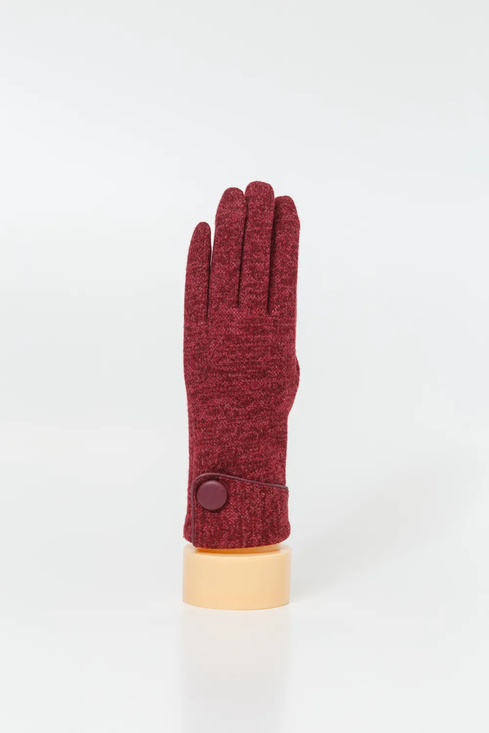 Γάντι γυναικείο, από πλεκτό ύφασμα με ρεβέρ, φυτίλι και επενδυμένο κουμπί.
