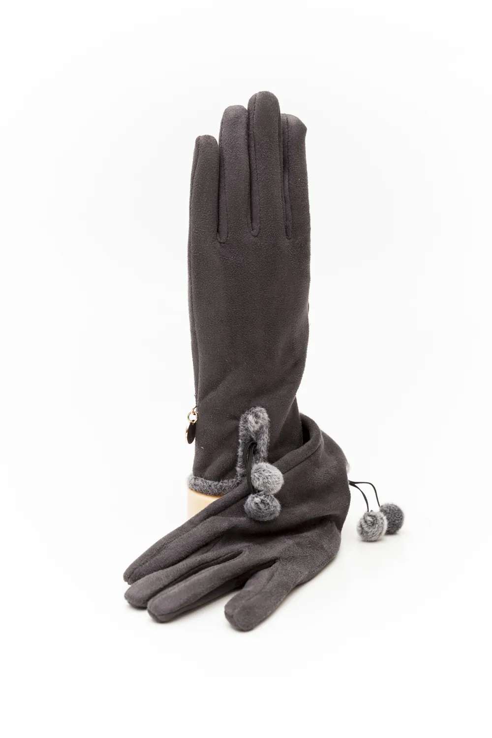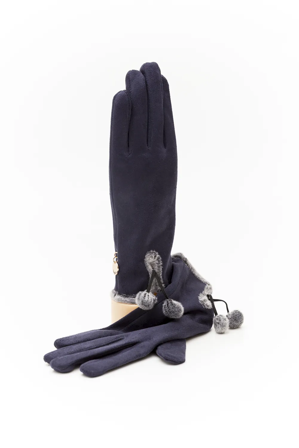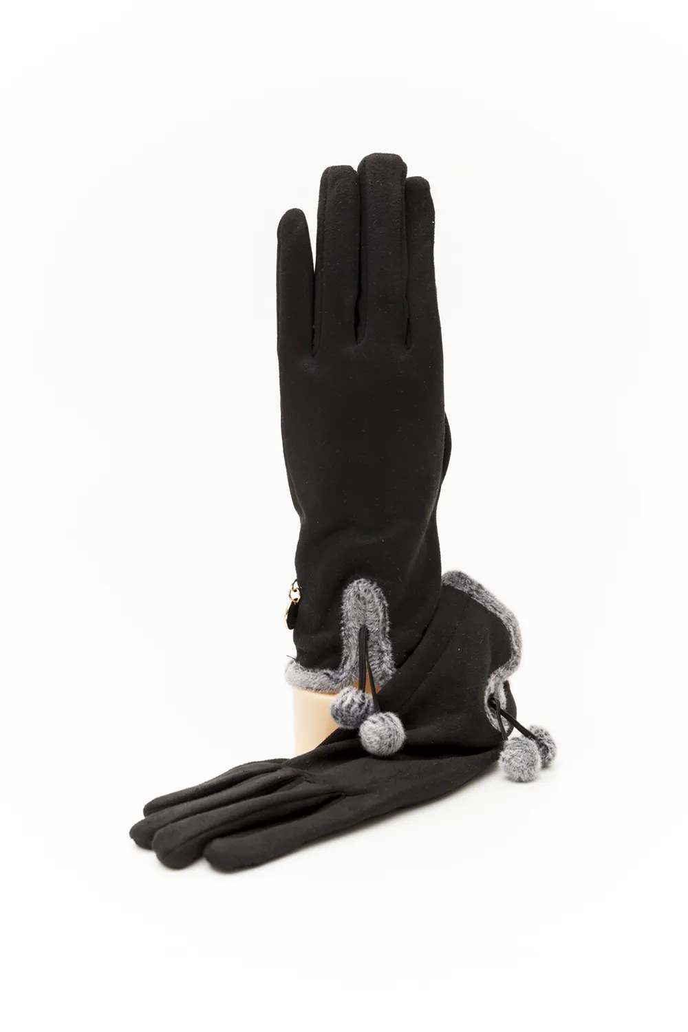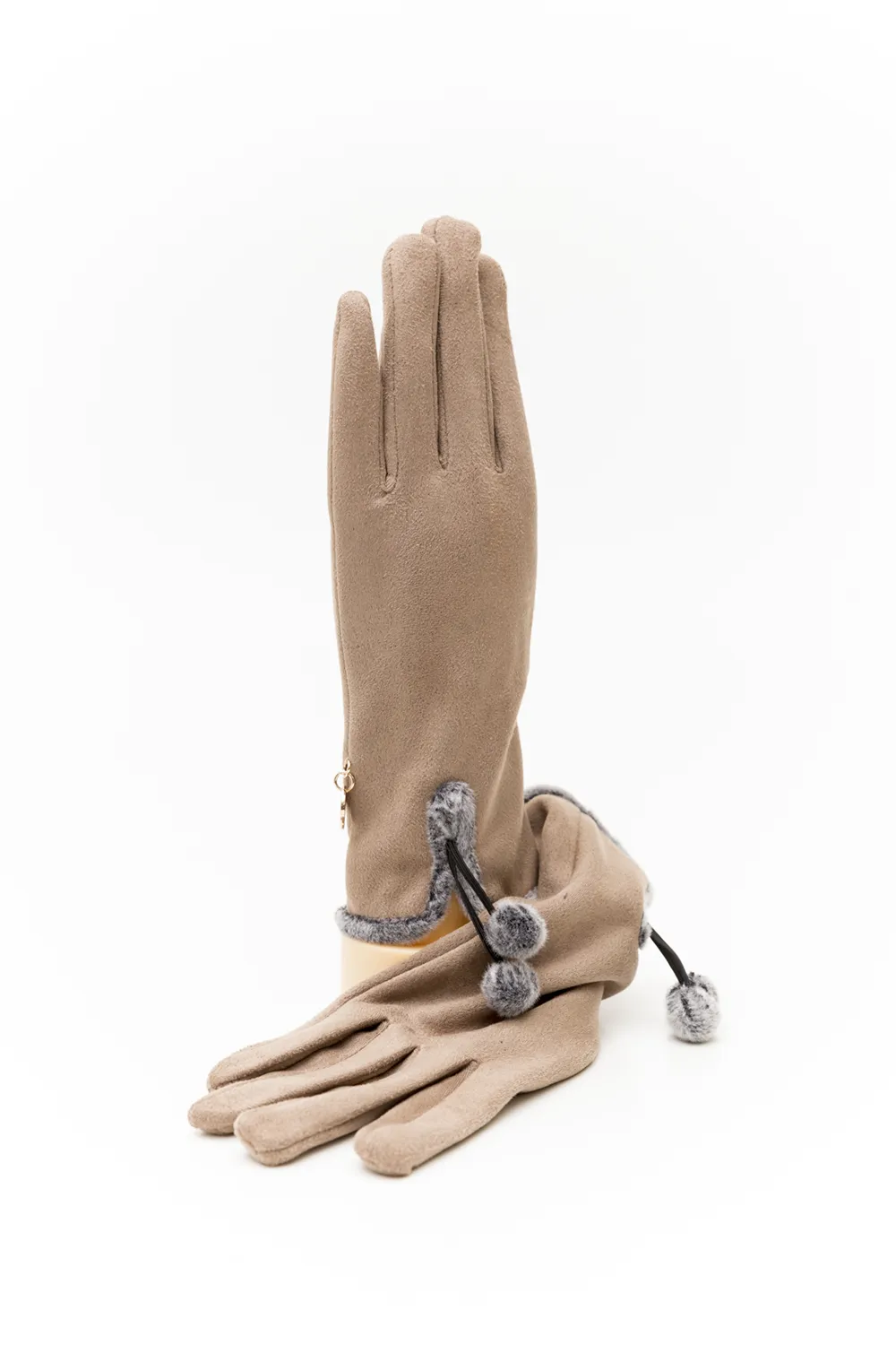 Γάντι γυναικείο με γούνινο φινίρισμα και φουντάκια.