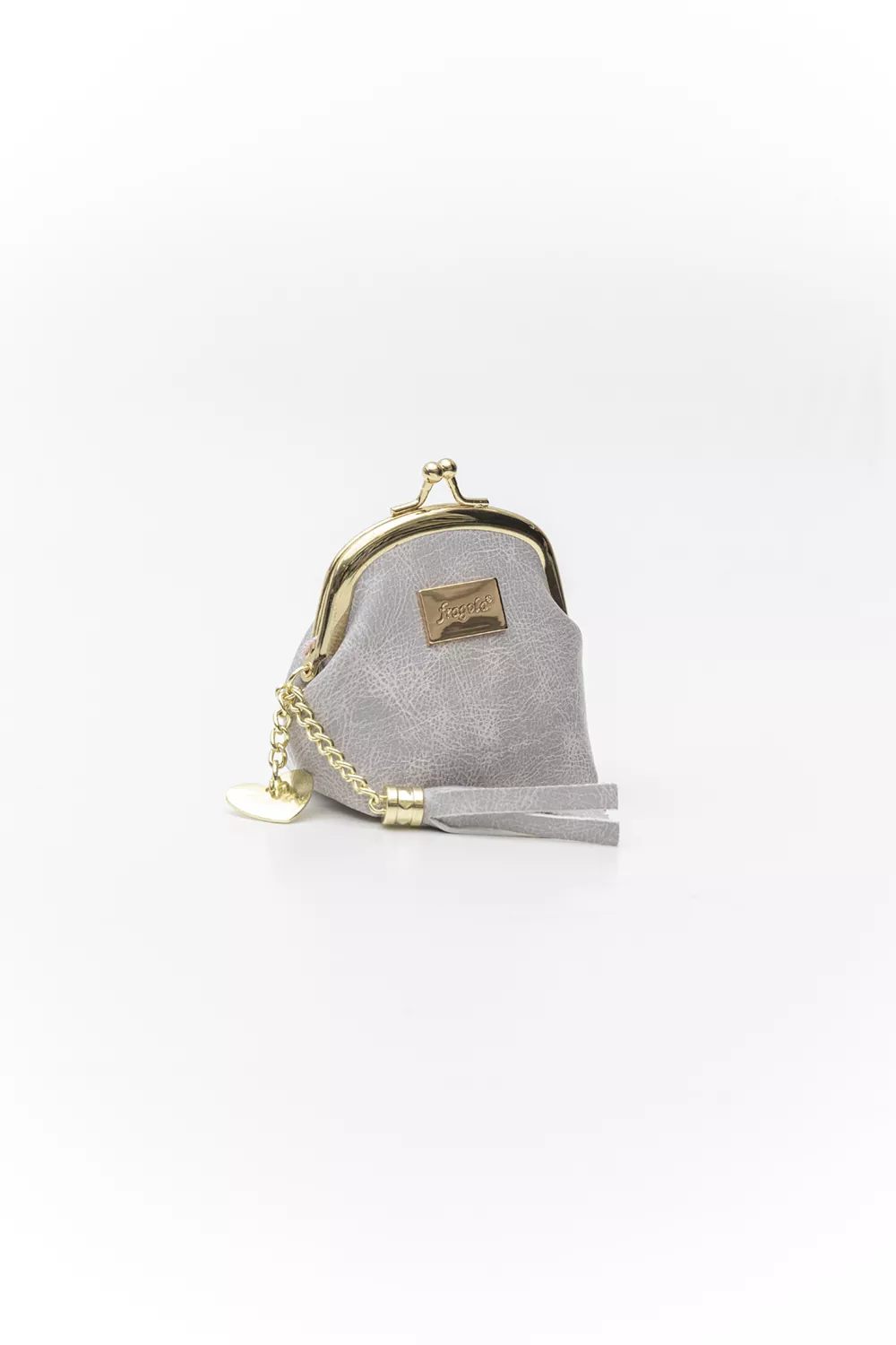 Φοδραρισμένη, ένας ενιαίος χώρος που κλείνει με μεταλλικό στόμιο. Διακοσμητική φούντα από συνθετικό υλικό και πέρλα, που προσδίδει κάτι ξεχωριστό και χαριτωμένο.