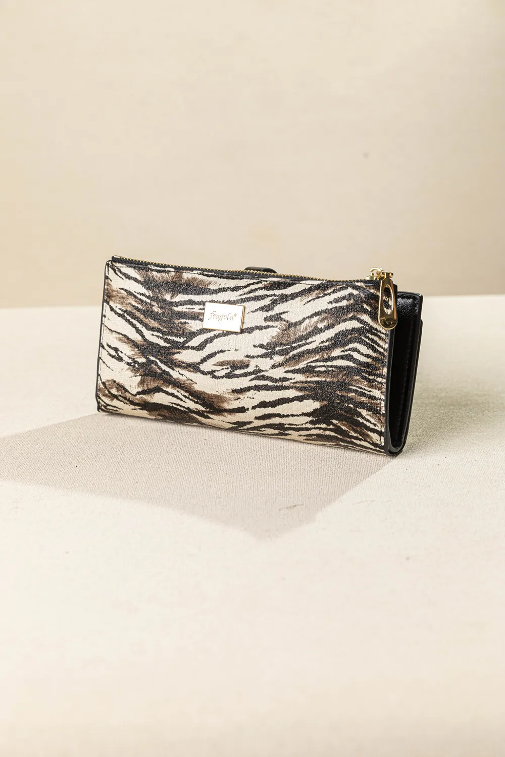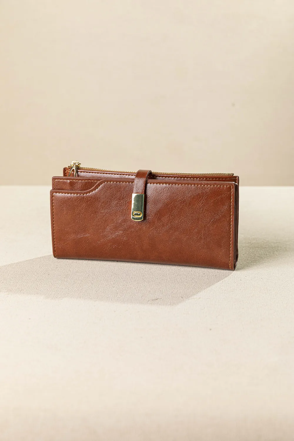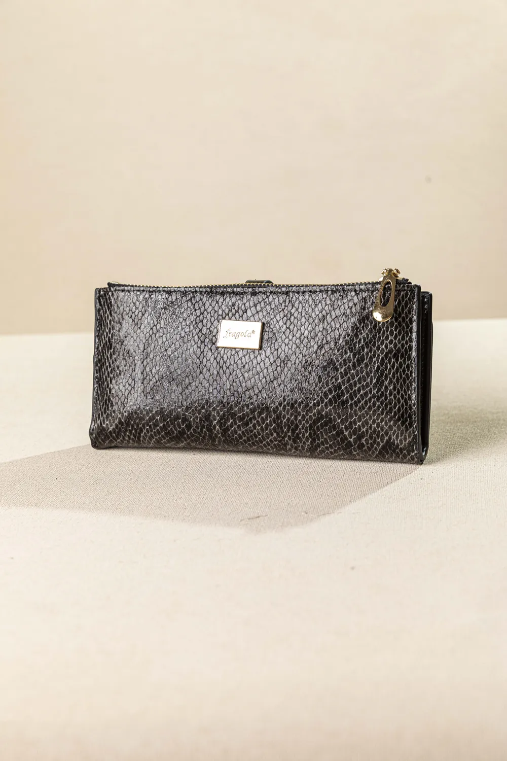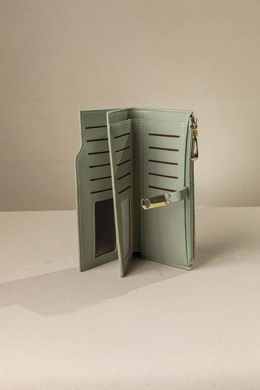 Μεγάλο πορτοφόλι που κλείνει με καπάκι με μαγνητικό μπουτόν. Διαθέτε πολλές θήκες για κάρτες και μεγάλη θήκη για χαρτονομίσματα. Εξωτερική θήκη με φερμουάρ για τα ψιλά με διαχωριστικό με έξτρα θήκη με φερμουάρ. Υλικό: Συνθετικό δέρμα με μαλακή υφή.