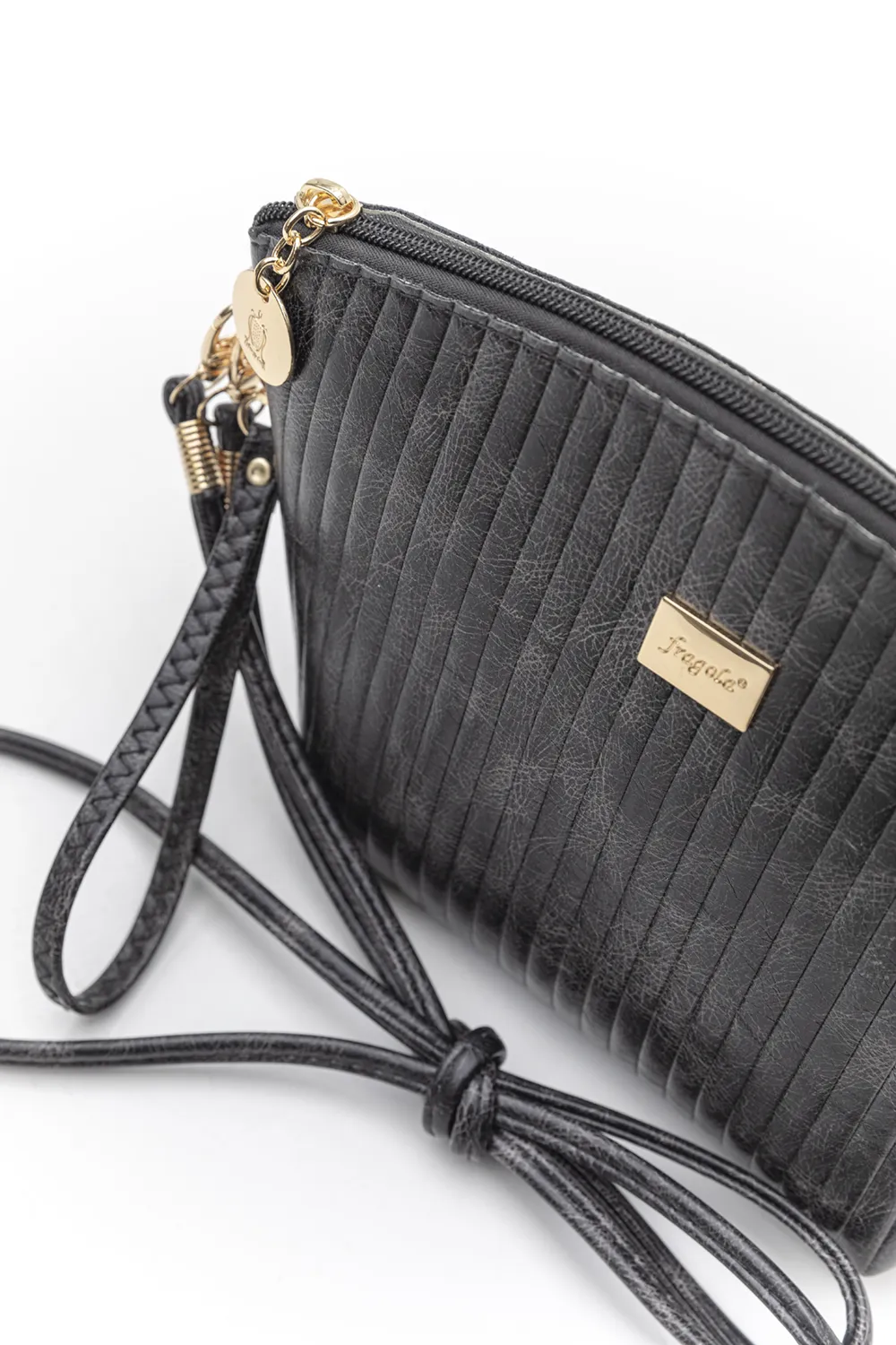 Νεσεσέρ τριθέσιο με extra χέρι αποσπώμενο για χιαστί. Διαθέτει εσωτερικό δεύτερο φερμουάρ που διαχωρίζει τις 3 θέσεις. Πολύ πρακτικό για όλη την ημέρα σας τσαντάκι χειρός ή μέσα στην τσάντα για τα απαραίτητα μικροαντικείμενα σας ή το μακιγιάζ σας. Εξωτερικό φερμουάρ στο πίσω μέρος. Διακοσμητικό μεταλλικό τελείωμα στο εξωτερικό φερμουάρ.